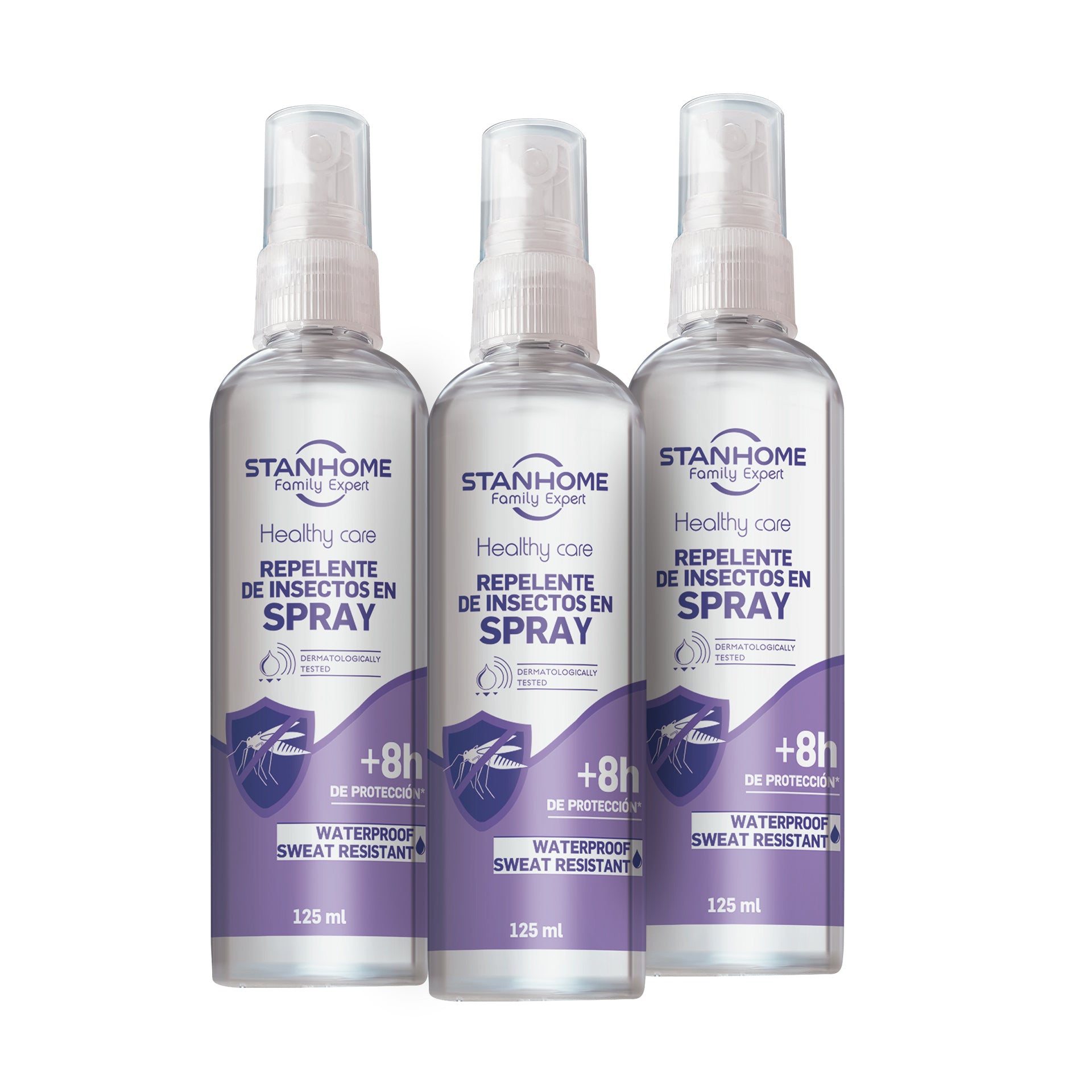 Disfruta tus actividades al aire libre con mayor tranquilidad con el StanPack Waterproof Protect de Stanhome, un paquete con 3 repelentes de insectos en spray de 125 ML diseñados para ayudar a evitar las molestas picaduras mientras brindan una aplicación práctica y cómoda.